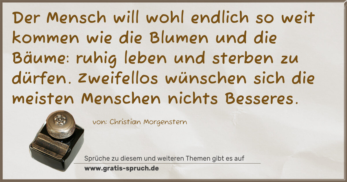 »Der Mensch will wohl endlich so weit kommen wie die Blumen und die Bäume: ruhig leben und sterben zu dürfen. Zweifellos wünschen sich die meisten Menschen nichts Besseres.