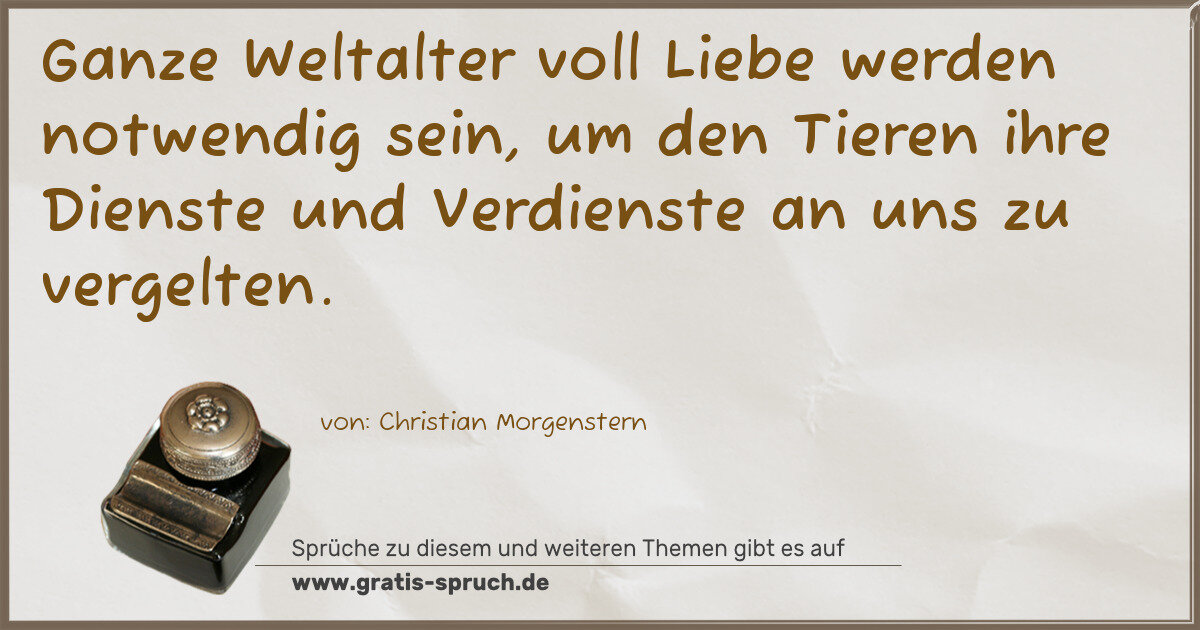 Ganze Weltalter voll Liebe werden notwendig sein, um den Tieren ihre Dienste und Verdienste an uns zu vergelten.