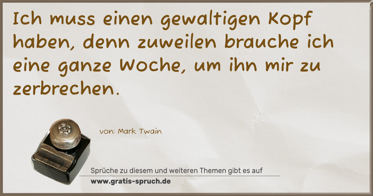 Ich muss einen gewaltigen Kopf haben, denn zuweilen brauche ich eine ganze Woche, um ihn mir zu zerbrechen.