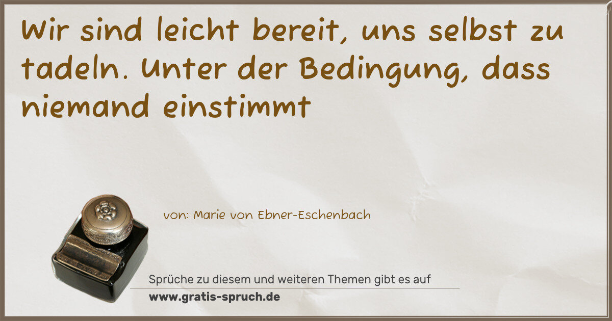Wir sind leicht bereit, uns selbst zu tadeln. Unter der Bedingung, dass niemand einstimmt