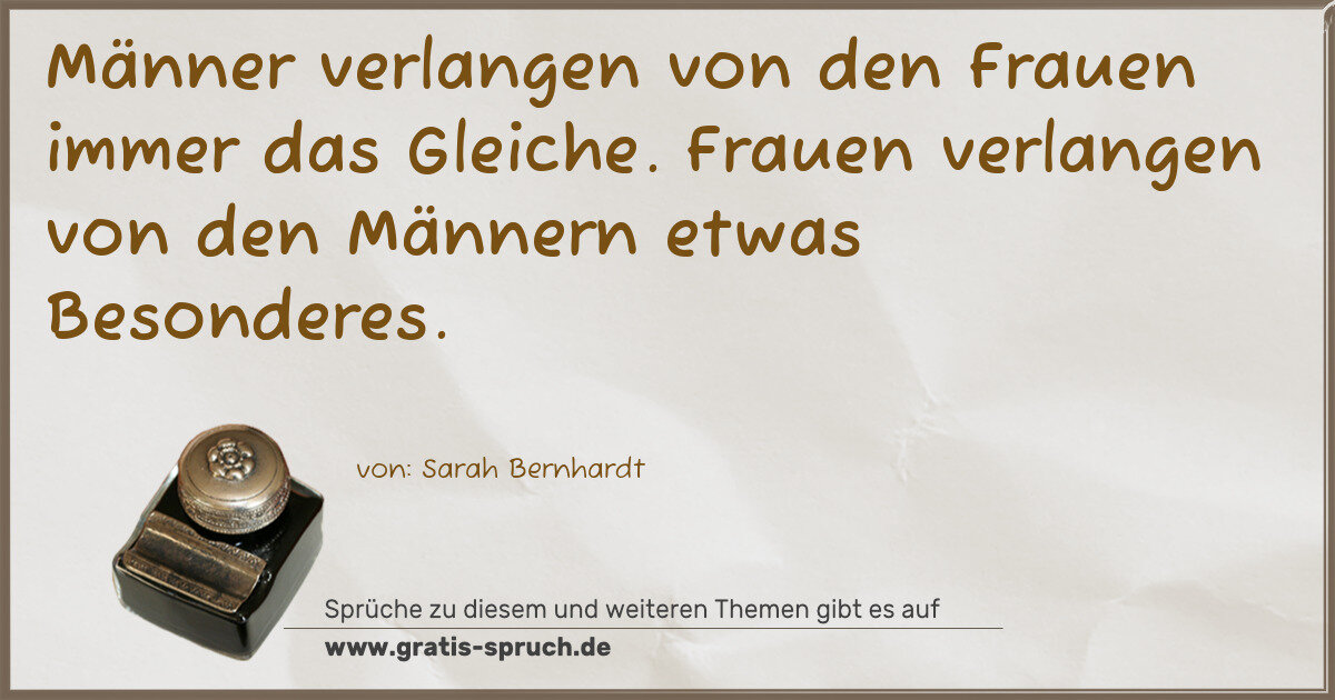 Männer verlangen von den Frauen immer das Gleiche. Frauen verlangen von den Männern etwas Besonderes.