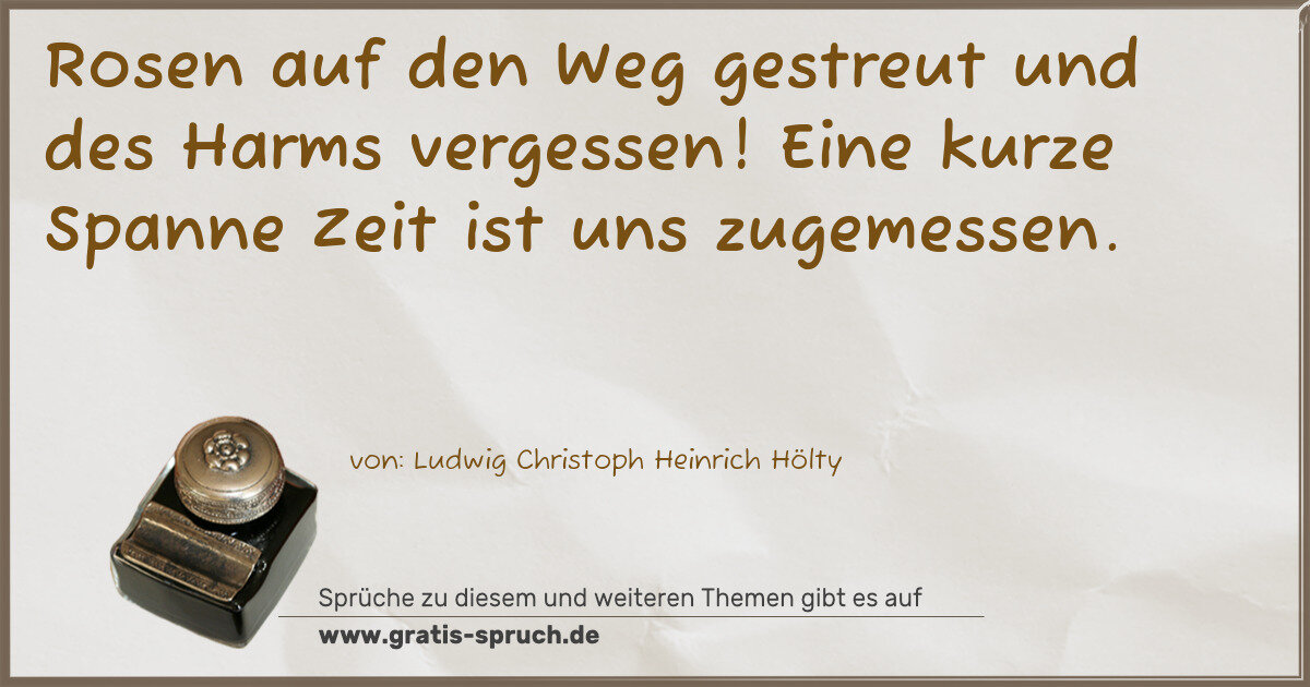 Rosen auf den Weg gestreut und des Harms vergessen! Eine kurze Spanne Zeit ist uns zugemessen.