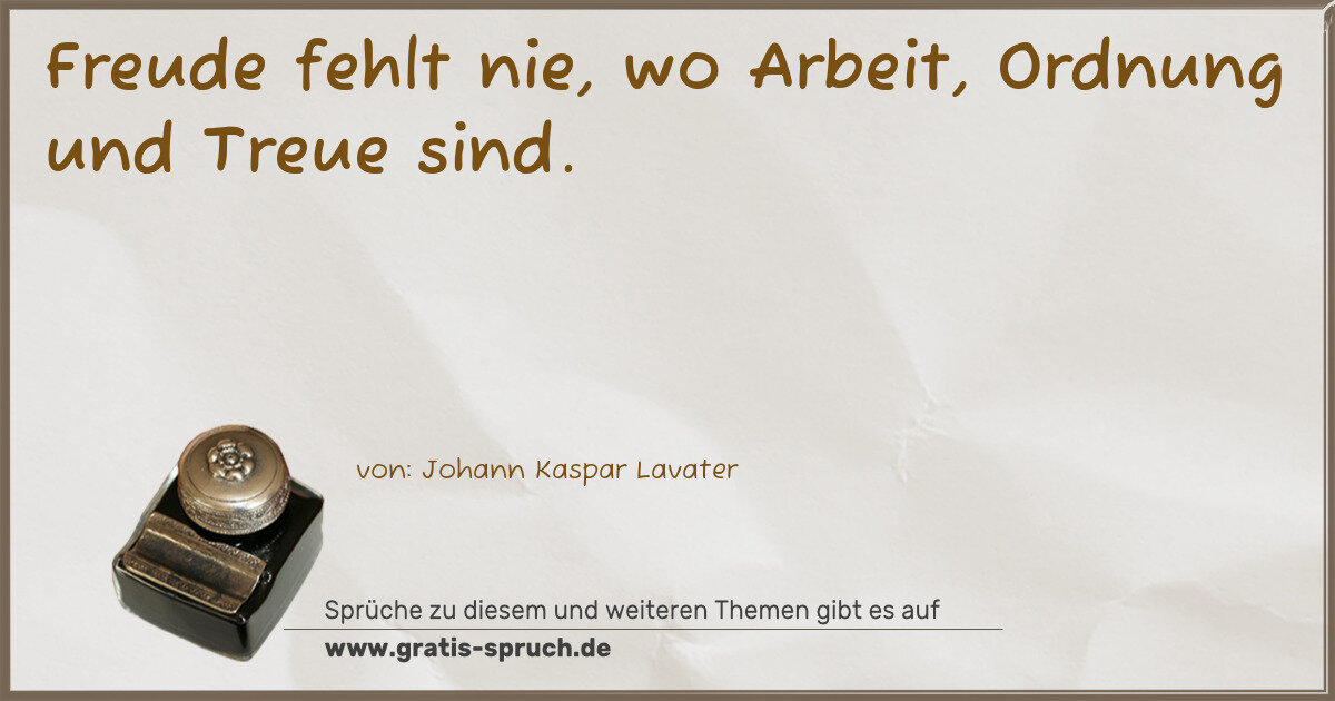 Freude fehlt nie, wo Arbeit, Ordnung und Treue sind.