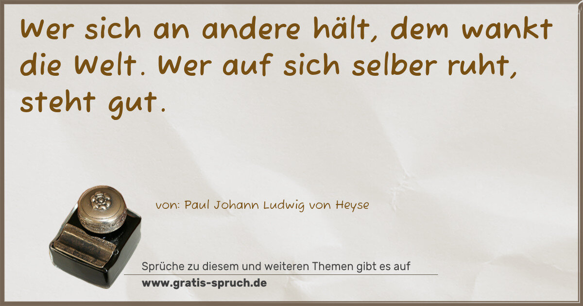 Wer sich an andere hält, dem wankt die Welt. Wer auf sich selber ruht, steht gut.