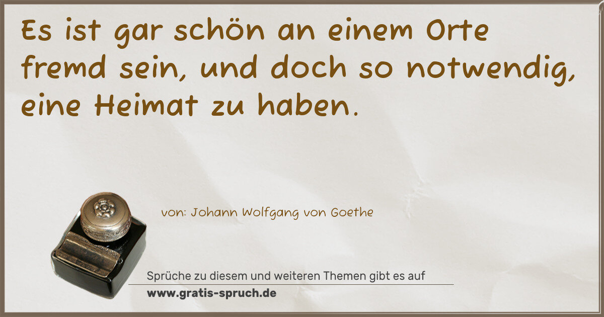 Es ist gar schön an einem Orte fremd sein, und doch so notwendig, eine Heimat zu haben.