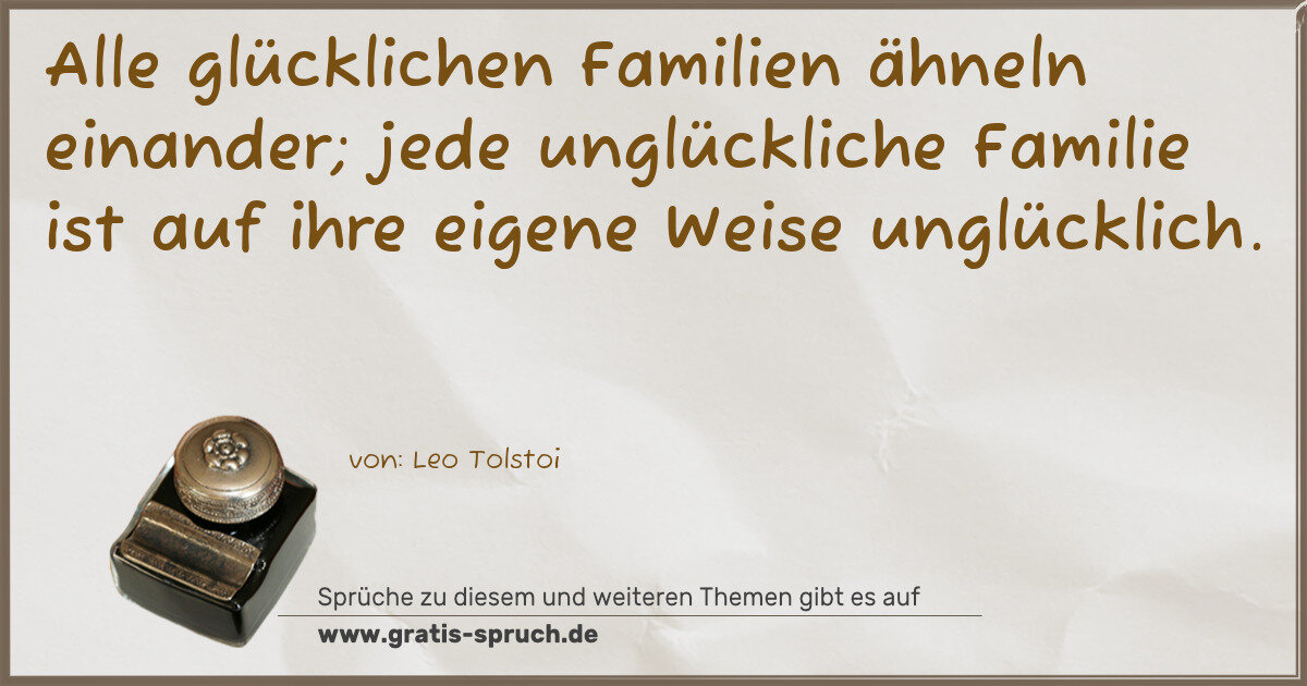 Alle glücklichen Familien ähneln einander; jede unglückliche Familie ist auf ihre eigene Weise unglücklich.