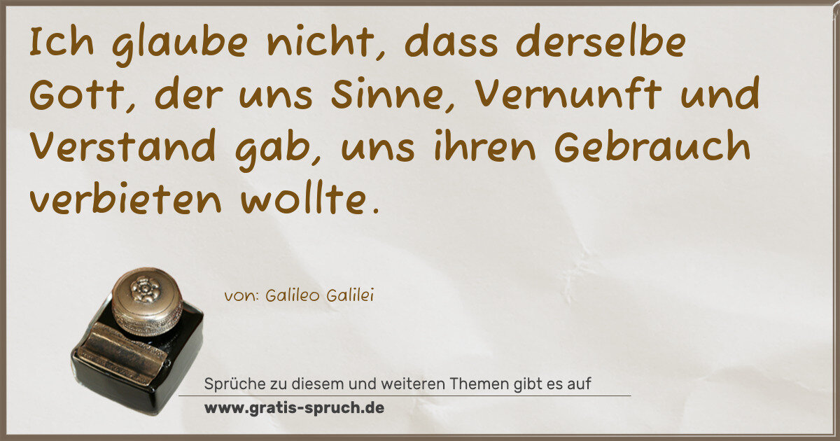 Ich glaube nicht, dass derselbe Gott, der uns Sinne, Vernunft und Verstand gab, uns ihren Gebrauch verbieten wollte.