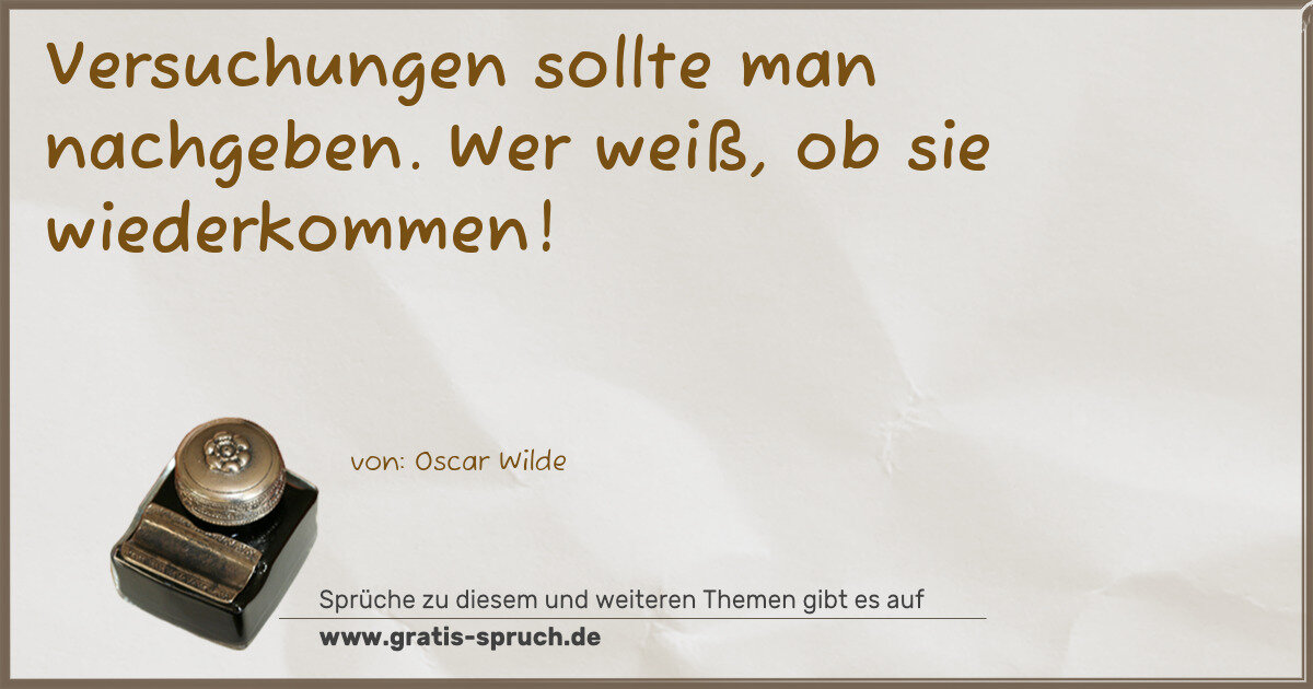 Versuchungen sollte man nachgeben. Wer weiß, ob sie wiederkommen!