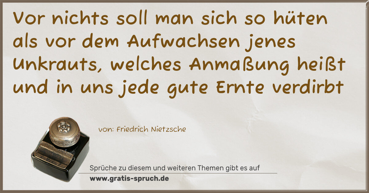 Vor nichts soll man sich so hüten als vor dem Aufwachsen jenes Unkrauts, welches Anmaßung heißt und in uns jede gute Ernte verdirbt
