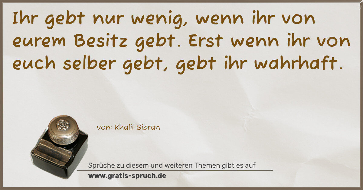 Ihr gebt nur wenig, wenn ihr von eurem Besitz gebt. Erst wenn ihr von euch selber gebt, gebt ihr wahrhaft.