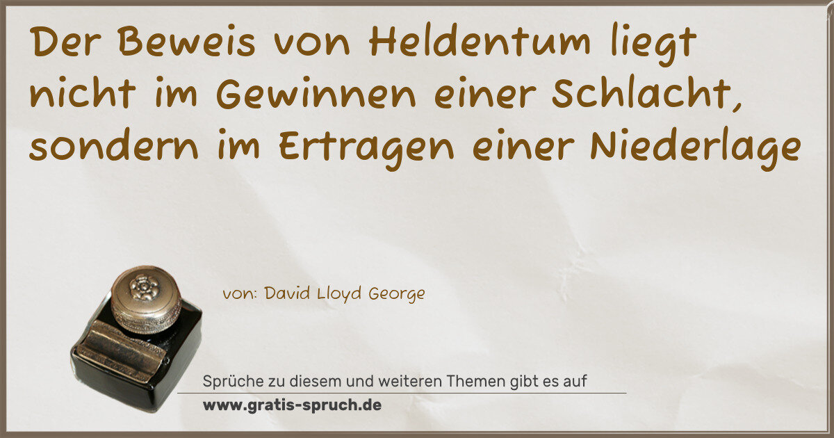 Der Beweis von Heldentum liegt nicht im Gewinnen einer Schlacht, sondern im Ertragen einer Niederlage