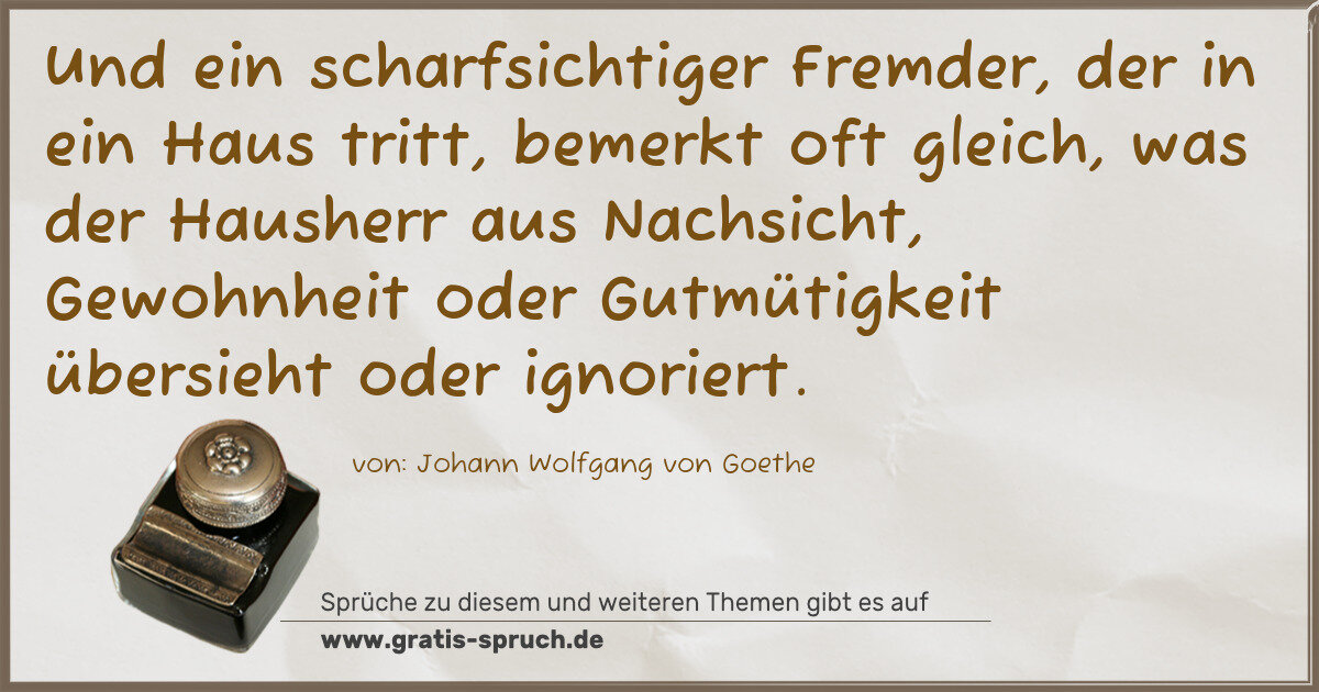 »Und ein scharfsichtiger Fremder, der in ein Haus tritt, bemerkt oft gleich, was der Hausherr aus Nachsicht,