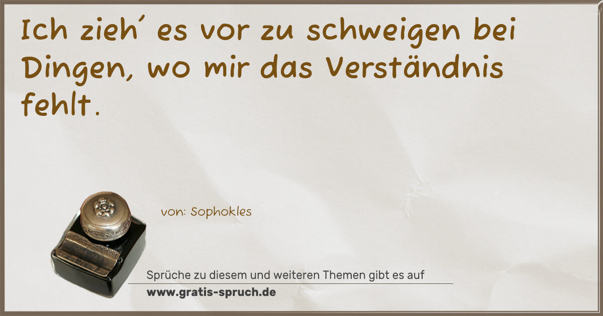 Ich zieh' es vor zu schweigen bei Dingen, wo mir das Verständnis fehlt.
