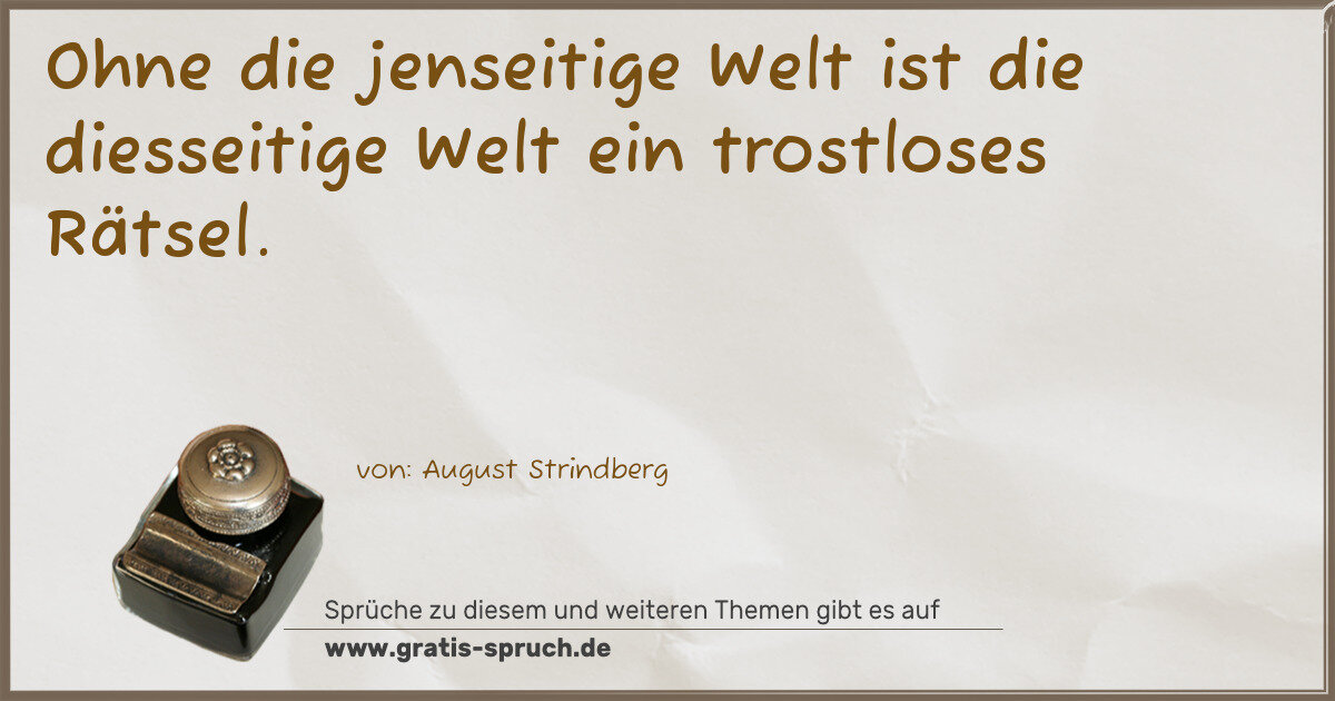 Ohne die jenseitige Welt ist die diesseitige Welt ein trostloses Rätsel.