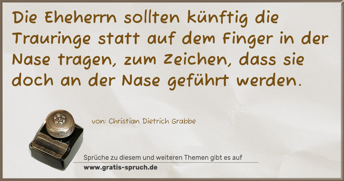 »Die Eheherrn sollten künftig die Trauringe statt auf dem Finger in der Nase tragen, zum Zeichen, dass sie doch an der Nase geführt werden.
