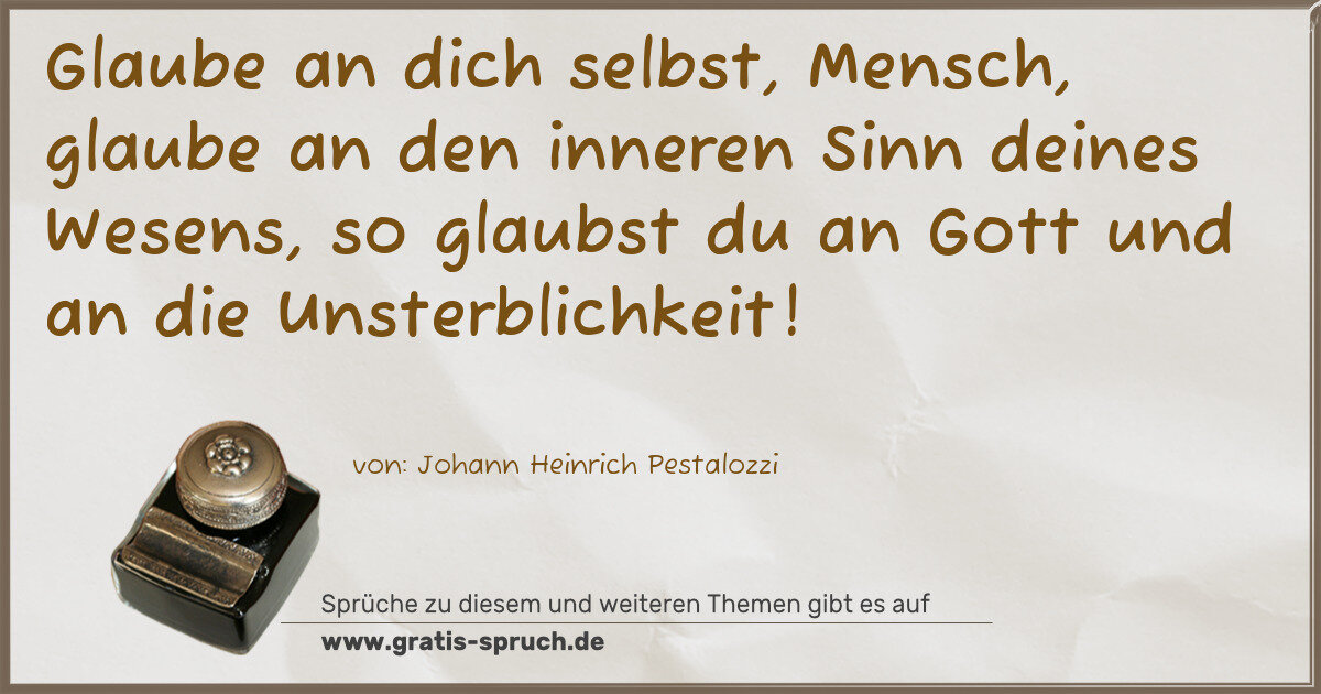 Glaube an dich selbst, Mensch, glaube an den inneren Sinn deines Wesens, so glaubst du an Gott und an die Unsterblichkeit!