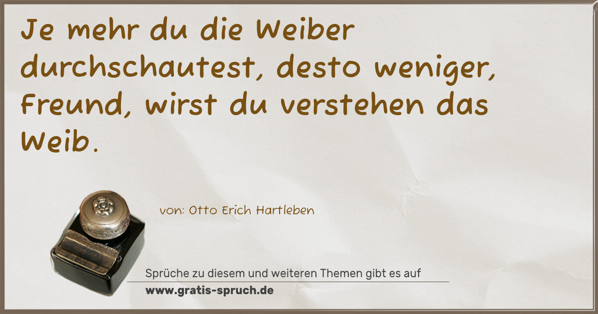 Je mehr du die Weiber durchschautest, desto weniger, Freund, wirst du verstehen das Weib.