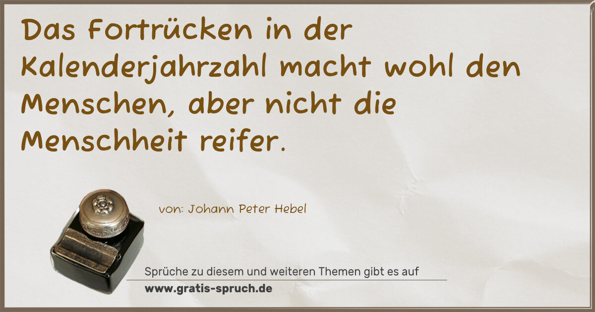 Das Fortrücken in der Kalenderjahrzahl macht wohl den Menschen, aber nicht die Menschheit reifer.