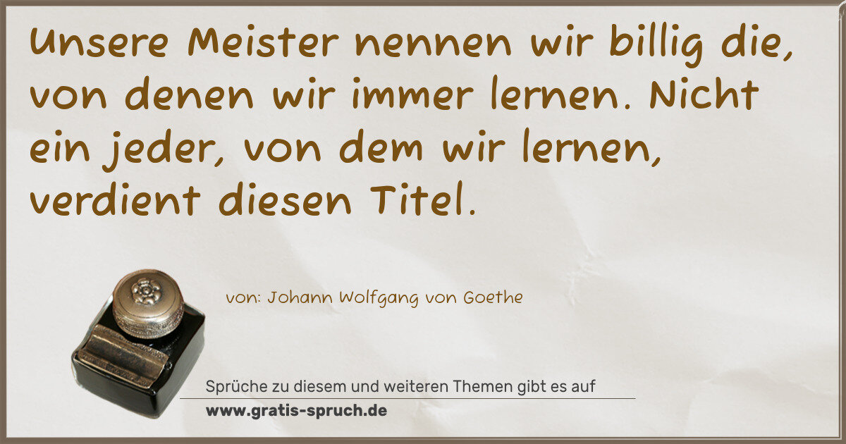 Unsere Meister nennen wir billig die, von denen wir immer lernen. Nicht ein jeder, von dem wir lernen, verdient diesen Titel.
