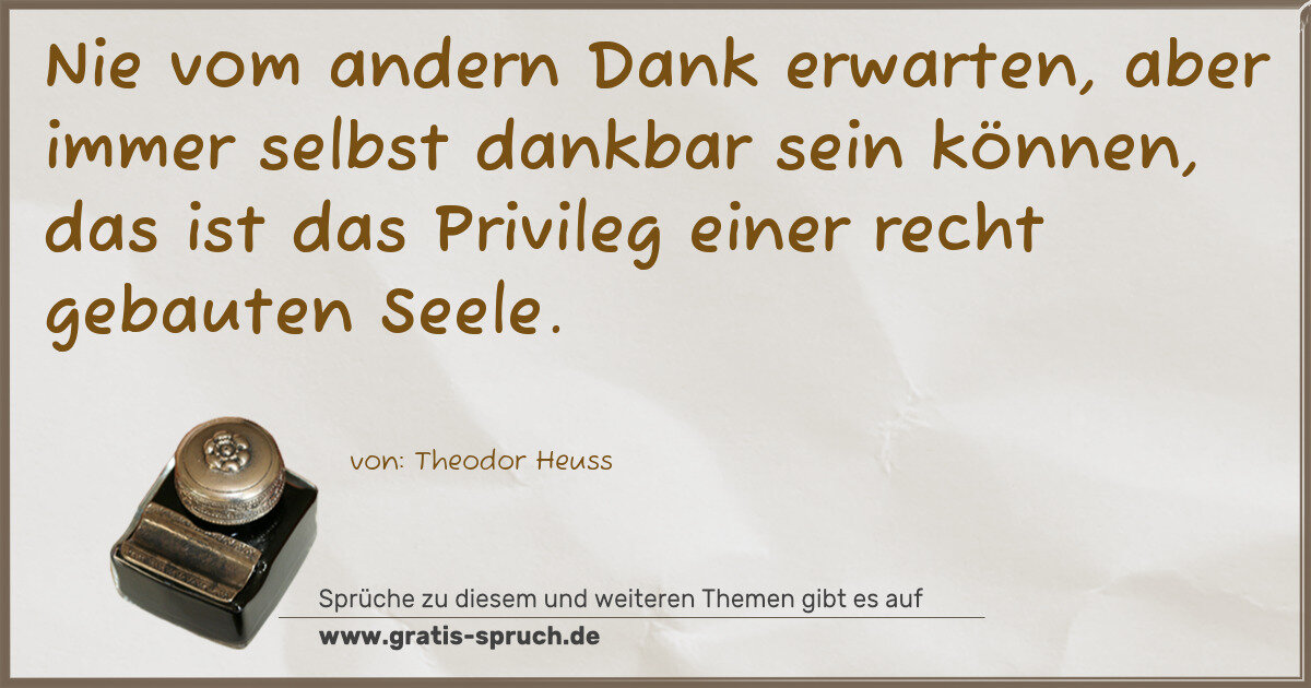 Nie vom andern Dank erwarten, aber immer selbst dankbar sein können, das ist das Privileg einer recht gebauten Seele.
