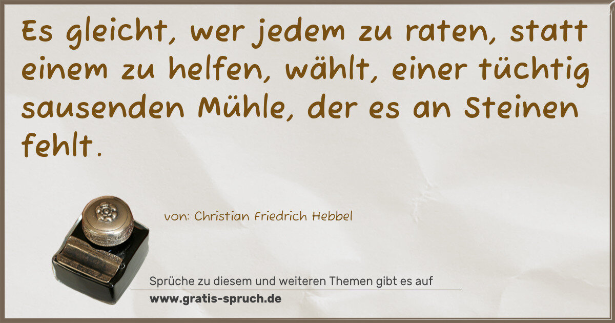 Es gleicht, wer jedem zu raten, statt einem zu helfen, wählt, einer tüchtig sausenden Mühle, der es an Steinen fehlt.