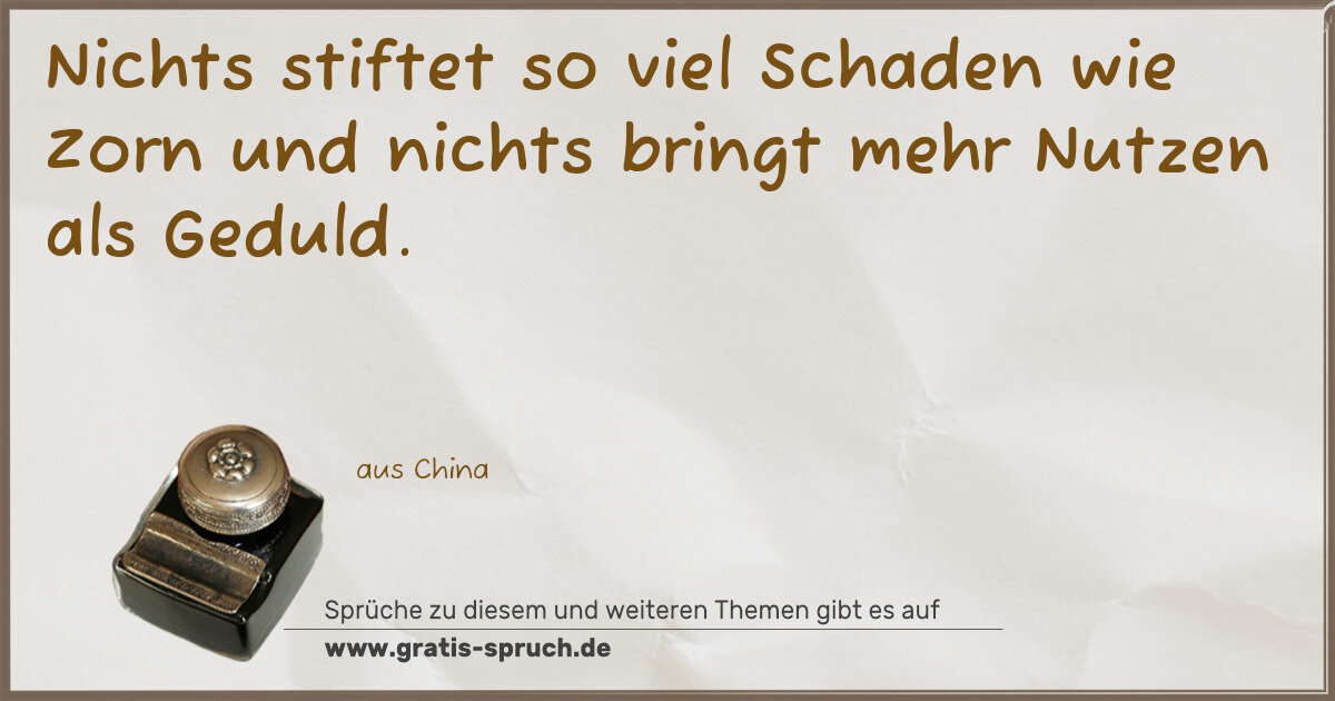 Nichts stiftet so viel Schaden wie Zorn und nichts bringt mehr Nutzen als Geduld.