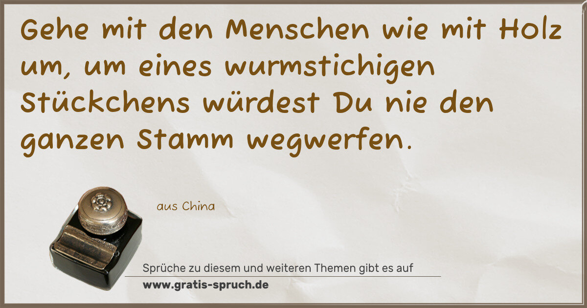 Gehe mit den Menschen wie mit Holz um, um eines wurmstichigen Stückchens würdest Du nie den ganzen Stamm wegwerfen.