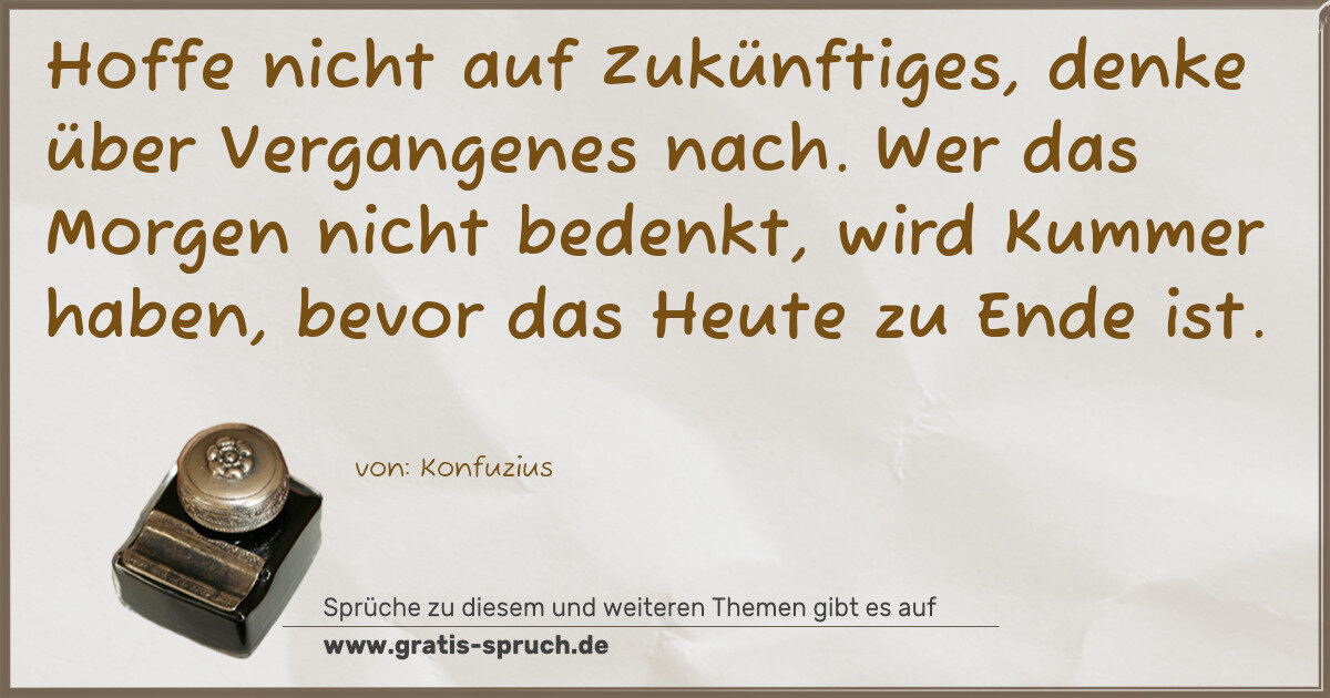 Wer das Morgen nicht bedenkt, wird Kummer haben,