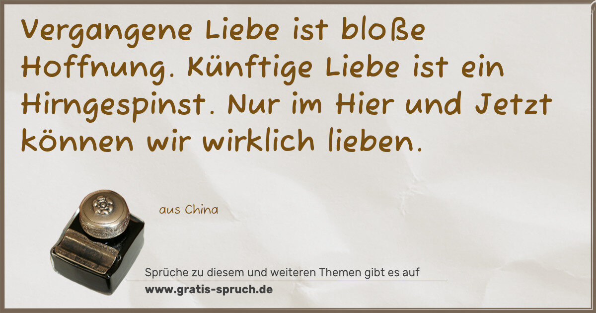 Vergangene Liebe ist bloße Hoffnung. Künftige Liebe ist ein Hirngespinst. Nur im Hier und Jetzt können wir wirklich lieben.