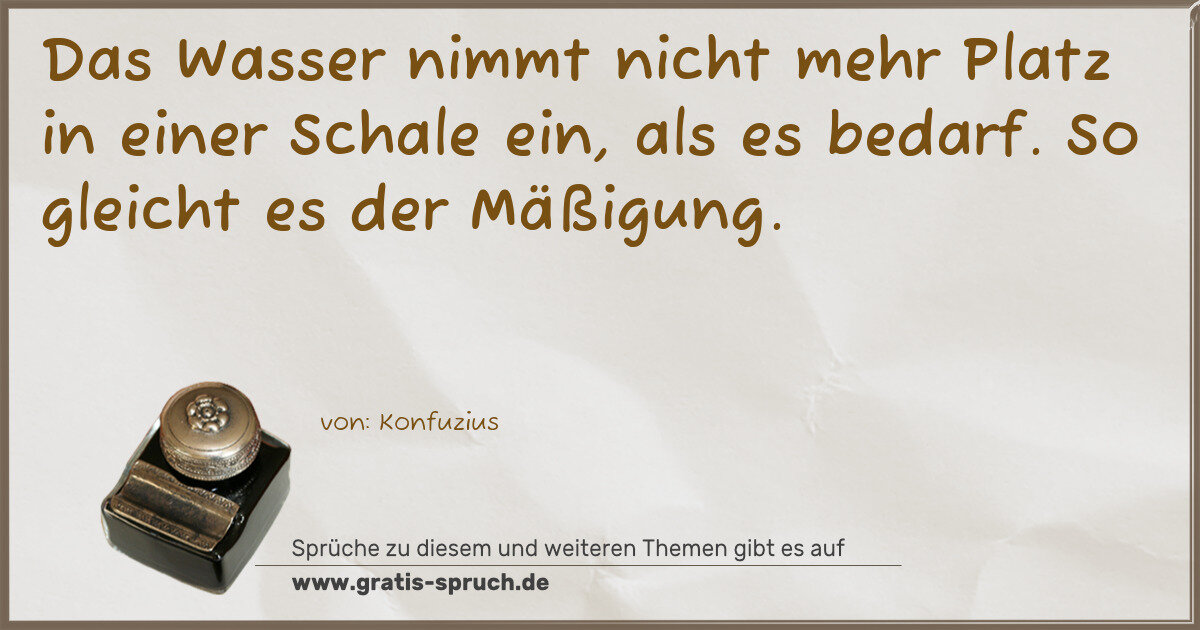 Das Wasser nimmt nicht mehr Platz in einer Schale ein, als es bedarf. So gleicht es der Mäßigung.