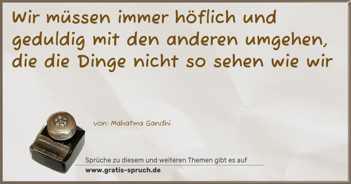 Wir müssen immer höflich und geduldig mit den anderen umgehen, die die Dinge nicht so sehen wie wir