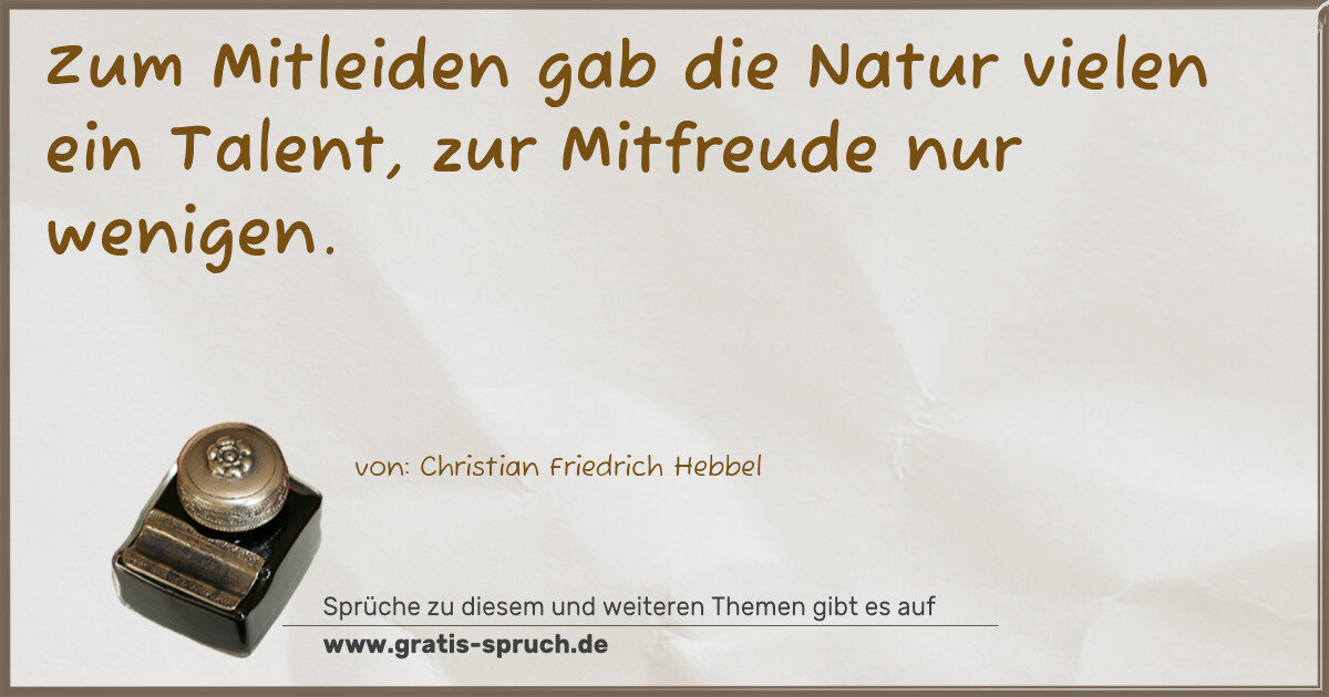 Zum Mitleiden gab die Natur vielen ein Talent, zur Mitfreude nur wenigen.