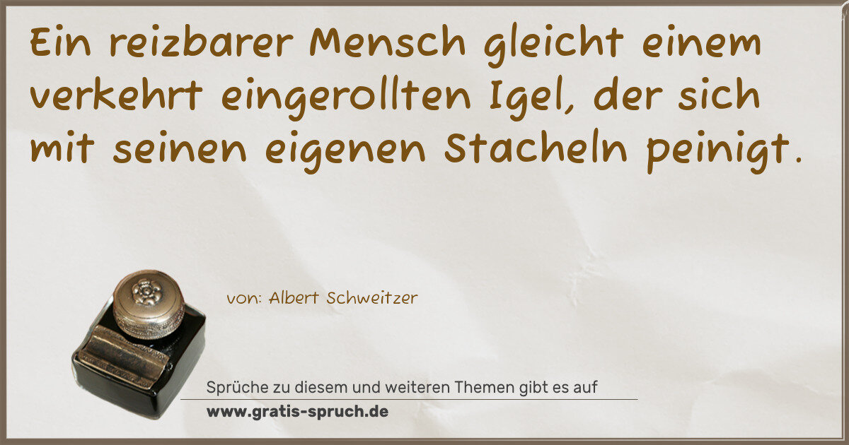 Ein reizbarer Mensch gleicht einem verkehrt eingerollten Igel, der sich mit seinen eigenen Stacheln peinigt.