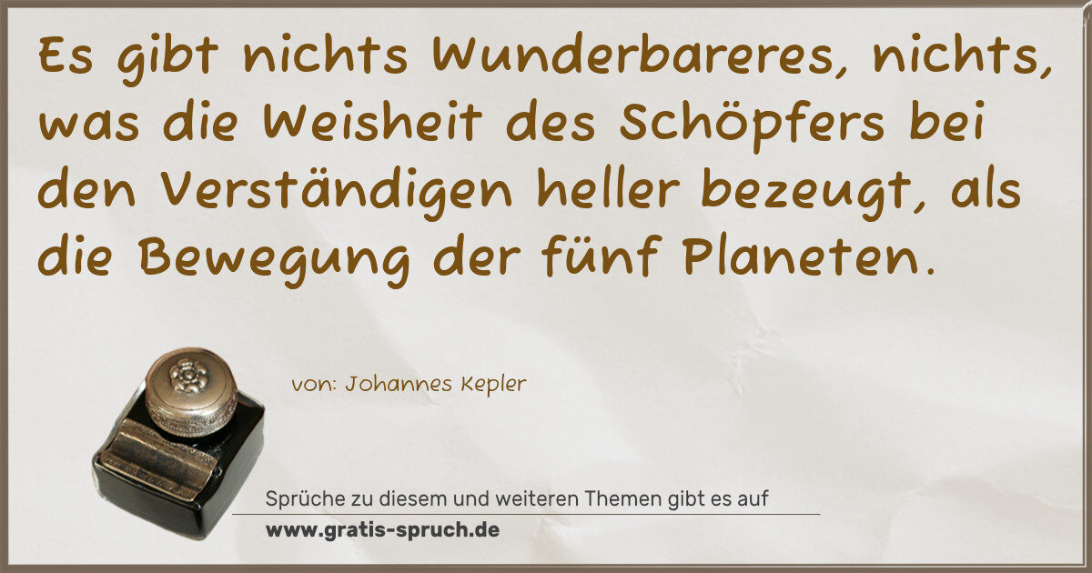 »Es gibt nichts Wunderbareres, nichts, was die Weisheit des Schöpfers bei den Verständigen heller bezeugt, als die Bewegung der fünf Planeten.