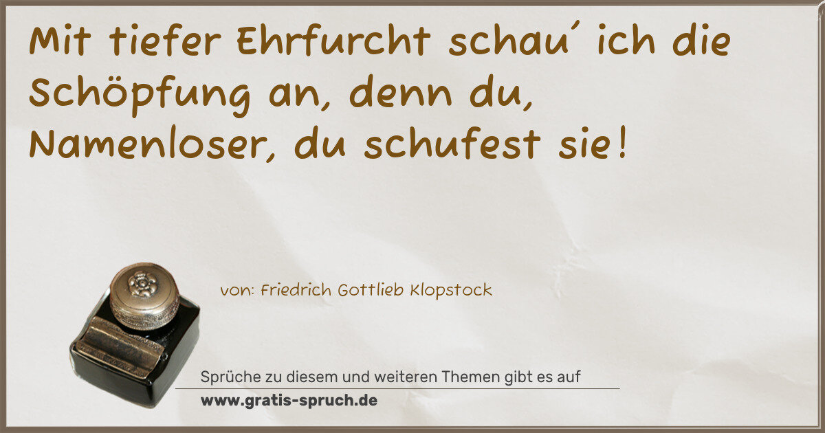 Mit tiefer Ehrfurcht schau' ich die Schöpfung an, denn du, Namenloser, du schufest sie!