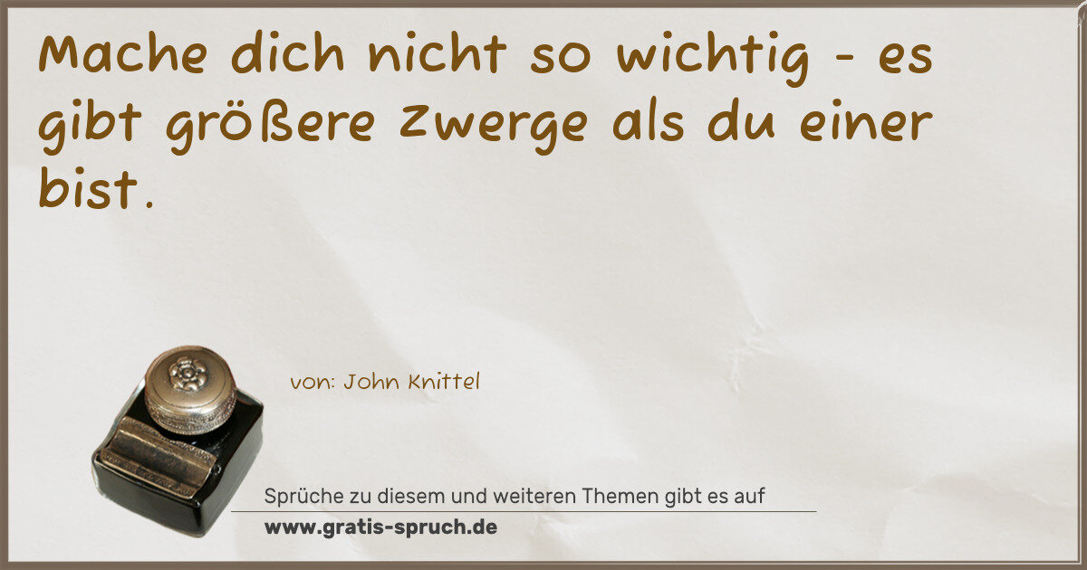 Mache dich nicht so wichtig - es gibt größere Zwerge als du einer bist.