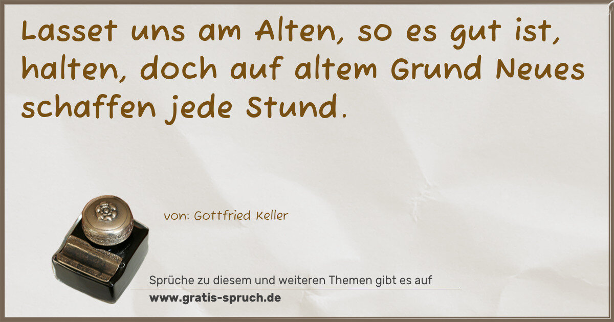 Lasset uns am Alten, so es gut ist, halten, doch auf altem Grund Neues schaffen jede Stund.