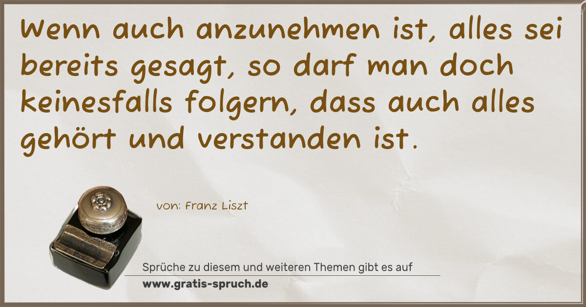 Wenn auch anzunehmen ist, alles sei bereits gesagt, so darf man doch keinesfalls folgern, dass auch alles gehört und verstanden ist.
