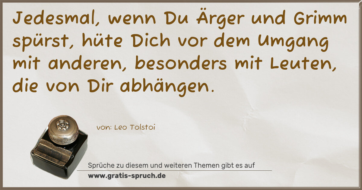 Jedesmal, wenn Du Ärger und Grimm spürst, hüte Dich vor dem Umgang mit anderen, besonders mit Leuten, die von Dir abhängen.
