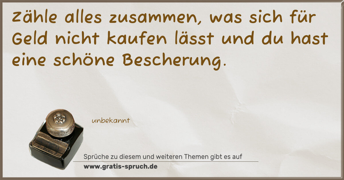 Zähle alles zusammen, was sich für Geld nicht kaufen lässt und du hast eine schöne Bescherung.
