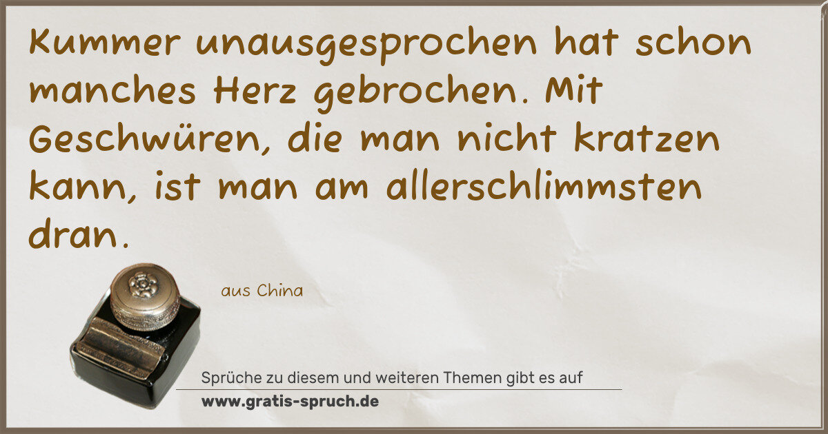 Kummer unausgesprochen hat schon manches Herz gebrochen. Mit Geschwüren, die man nicht kratzen kann, ist man am allerschlimmsten dran.