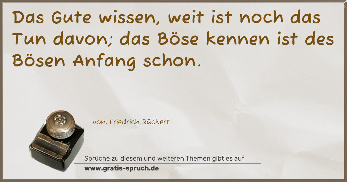Das Gute wissen, weit ist noch das Tun davon; das Böse kennen ist des Bösen Anfang schon.