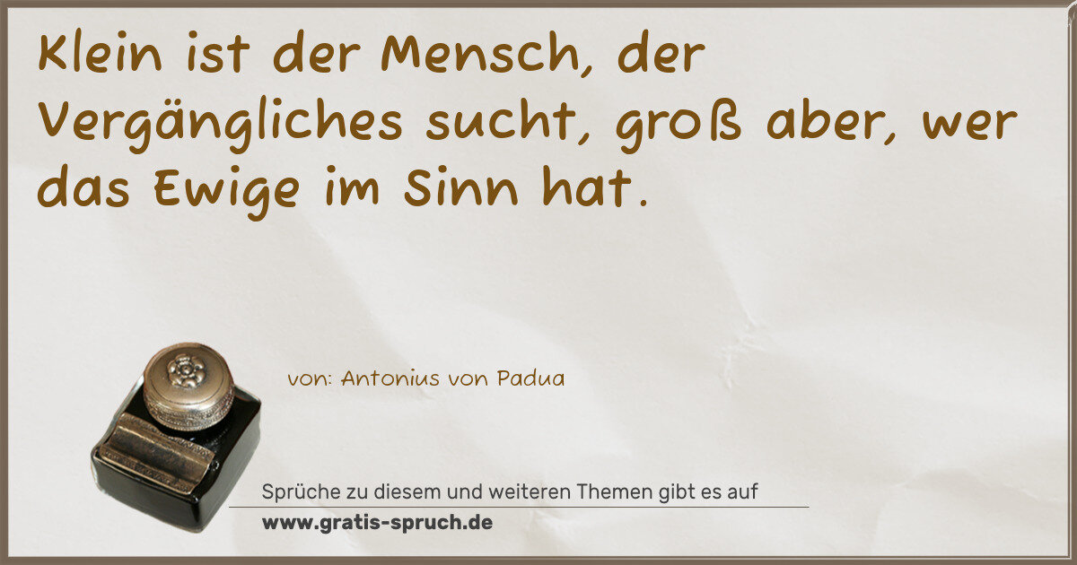 Klein ist der Mensch, der Vergängliches sucht, groß aber, wer das Ewige im Sinn hat.