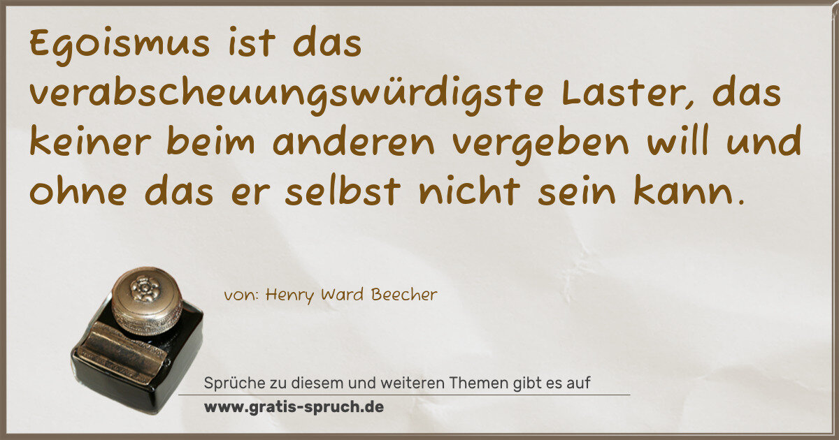 Egoismus ist das verabscheuungswürdigste Laster, das keiner beim anderen vergeben will und ohne das er selbst nicht sein kann.
