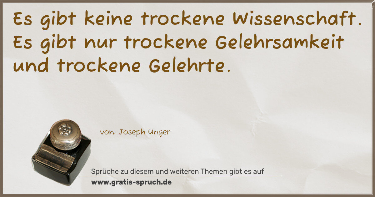 Es gibt keine trockene Wissenschaft. Es gibt nur trockene Gelehrsamkeit und trockene Gelehrte.