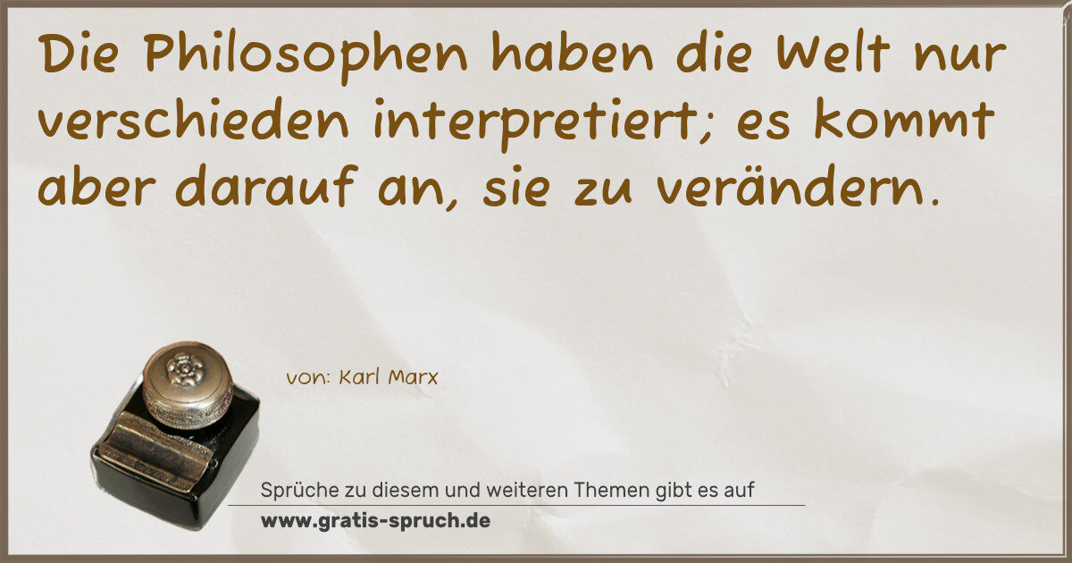 Die Philosophen haben die Welt nur verschieden interpretiert; es kommt aber darauf an, sie zu verändern.