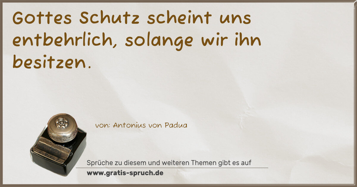 Gottes Schutz scheint uns entbehrlich, solange wir ihn besitzen.