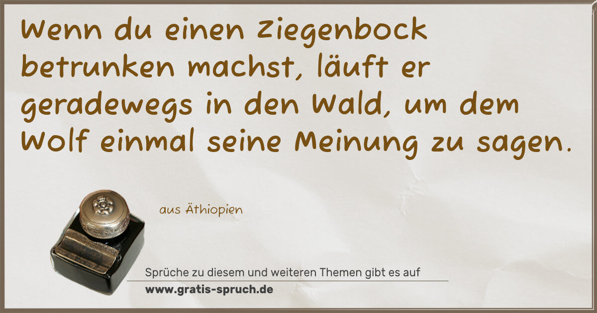 Wenn du einen Ziegenbock betrunken machst, läuft er geradewegs in den Wald, um dem Wolf einmal seine Meinung zu sagen.