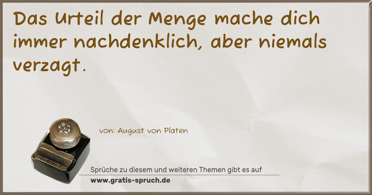 Das Urteil der Menge mache dich immer nachdenklich, aber niemals verzagt.
