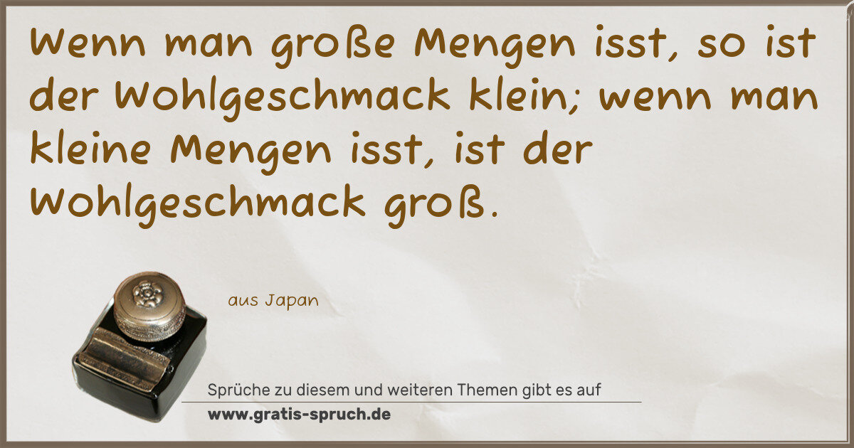 Wenn man große Mengen isst, so ist der Wohlgeschmack klein; wenn man kleine Mengen isst, ist der Wohlgeschmack groß.